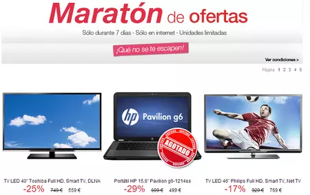 Quedan pocos días, hasta el 28 de este mes, y las unidades son limitadas como estarás imaginando. En el catálogo puedes ver las que ya están agotadas y las que todavía tienes disponibles a tu alcance. ¿Necesitas un portatil nuevo? ¿Una tele? ¿Una tablet? Pues echa un ojo porque puedes encontrarte con descuentos de hasta el 70% en todo tipo de productos y el precio se vuelve muy interesante.