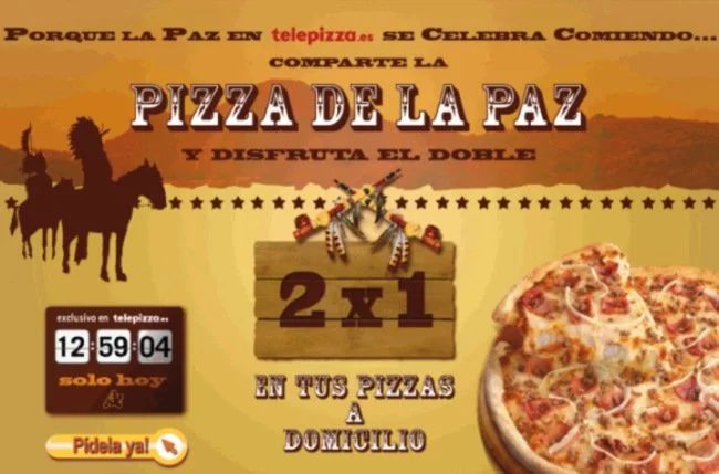 Sólo por hoy se celebra el Día de la Paz y la cadena de pizzas lo quiere celebrar a lo grande, hoy en exclusiva Telepizza ofrece un 2x1 a domicilio en pizzas medianas o familiares de 3 o más ingredientes. La de regalo tiene que ser de igual o menor valor que la que tengas que abonar, tenemos en cuenta siempre la letra pequeña ¿verdad?