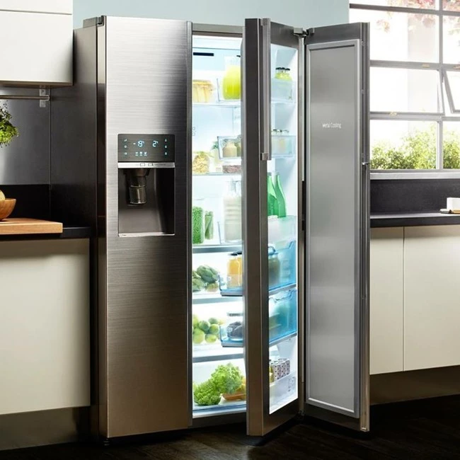 El Food Showcase de Samsung también cuenta con una doble puerta, en este caso completa, como podéis ver a la derecha. La Daily Door, que así se llama, incorpora diferentes compartimentos personalizables para poder coger instantáneamente los alimentos de uso cotidiano con el consiguiente ahorro de energía. Además, su tecnología metal cooling en la puerta exterior ayuda a mantener la temperatura durante más tiempo.
