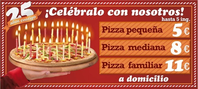 Seguro que ya te has enterado de que en Telepizza están celebrando su 25 aniversario, ¿verdad? Como no podía ser de otra forma, han puesto en marcha una promoción especial para la ocasión con unos precios muy interesantes. Ya sabes, si estás pensando en pegarte un capricho en casa por algún motivo justificado, ten en cuenta esta oferta.