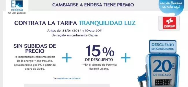Endesa lanza una campaña para intentar captar clientes, en esta promoción ofrece a los clientes acogidos al mercado libre de la electricidad descuentos (desde ocho hasta los veinte euros según la modalidad de contrato) al repostar en las estaciones de servicio de Cepsa.