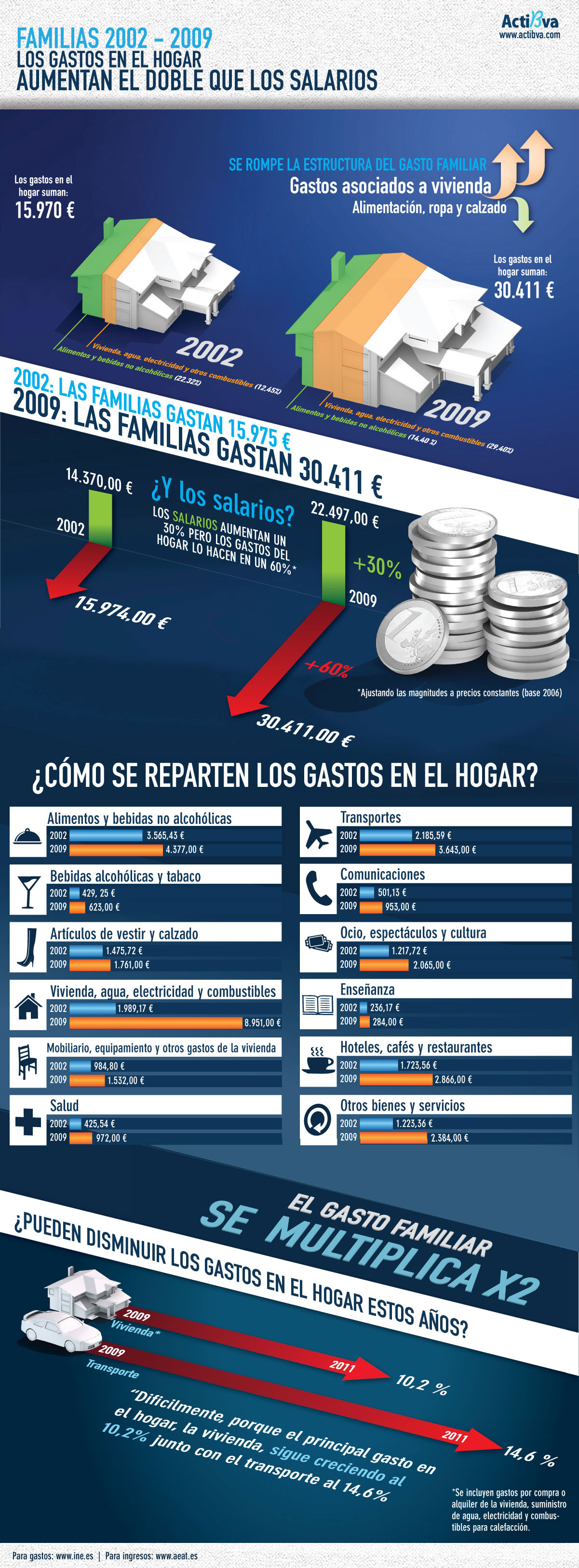 Los compañeros de ActiBva nos traen un estupendo resumen en una infografía que detalla como nos ha afectado la economía en estos últimos años, ahora gastamos casi el doble pero los ingresos merman haciendo que las familias, su poder adquisitivo y su ahorro haya sido seriamente perjudicado.