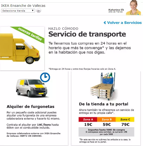 Ya sabemos que a la hora de llevarnos los muebles de Ikea a casa tenemos varias opciones, la de hacernos cargo nosotros mismos, la de alquilar una furgoneta por horas o bien la de solicitar un servicio de transporte, en cuyo caso contamos con las ventajas de recibir los muebles en 24 horas, pudiendo elegir entre tres franjas horarias diferentes para su entrega.