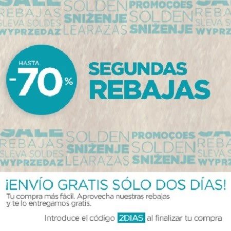 Una buena noticia para todos los que pensamos que comprar online es la mejor forma de evitarse colas en las tiendas y agobios de rebajas, pero que el hecho de sumar los gastos de envío al final del pedido es algo que nos echa para atrás. Pues bien, lo único que hay que hacer es usar el código 2DÍAS al terminar la compra y no pagaremos nada, ni hoy ni mañana.