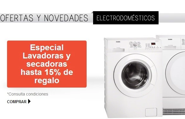 Si estás pensando en renovar lavadora o secadora, en El Corte Inglés tienen una promoción especial que afectará a nuestra próxima compra en sus tiendas. Tendremos hasta un 15 % de regalo para las siguientes compras en electrodomésticos, electrónica o informática. Y aquí es donde tenemos que ser prácticos y pensar a largo plazo, ¿vamos a necesitar algo más? ¿Le sacaremos partido?