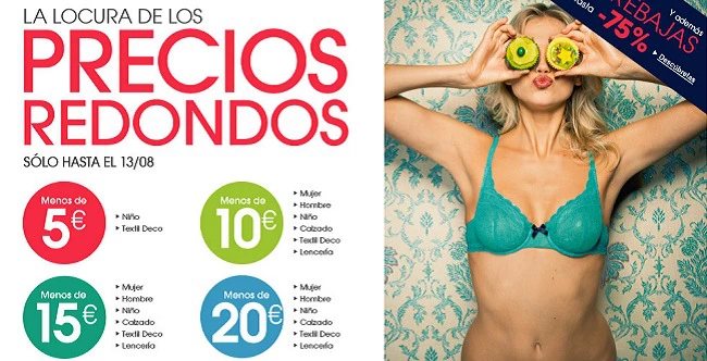 En su página web nos presentan esta semana ‘los precios redondos‘, con descuentos importantes en la colección de primavera-verano. Tenemos hasta el próximo 13 de agosto para poder disfrutar esta promoción y prestando mucha atención a las tallas porque ya se sabe, ¡rápido se acaban! Los precios parten de los 5 euros y hasta los 20, que son las prendas más caras. Todo ello gracias a descuentos de hasta el 70% en el precio inicial, ¡echa un ojo!