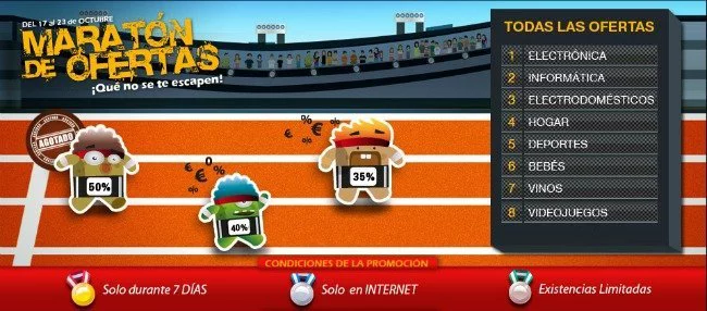 Como su propio nombre indica, se trata de un 'maratón de ofertas' y es que puedes encontrar descuentos muy interesantes en muchas de sus secciones: electrónica, informática, electrodomésticos, hogar, deportes, bebés, vinos o videojuegos. Hasta un 50% menos en tus compras, que suena muy bien.