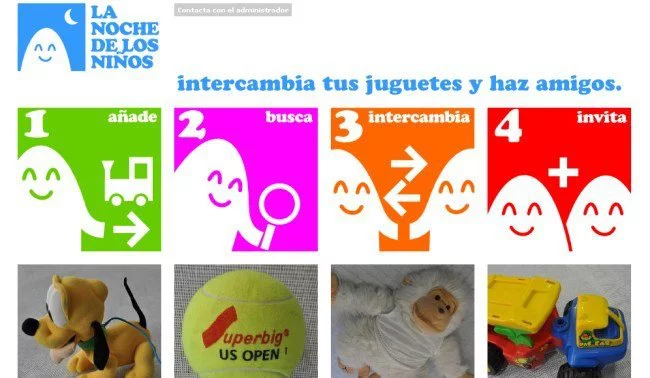 Debes entrar en la web www.lanochedelosniños.org si quieres ver cómo funciona, aquí podrás hacer un seguimiento de los juguetes entre los niños que los donan y los que después pueden elegir a cambio del suyo. Sonajeros, pelotas de bebé, triciclos, etc, pasarán de un niño a otro y seguirán siendo los reyes de alguna casa y no de un trastero.