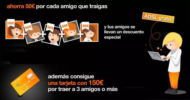 ¿Ventajas para esos nuevos clientes? Pues también ya que estos nuevos usuarios podrán disfrutar de un mes de ADSL gratis así como de la promoción vigente en el momento de la contratación. ¿Eres de Orange? ¿Ya estás buscando amigos?