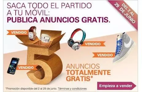 Si te gusta el mundo ebay y lo tuyo es vender y vender hoy os traigo buenas noticias para quienes quieran hacerlo ya a través de la aplicación para móviles. Hasta el domingo 29 de junio, a las 23:59:59h, los vendedores particulares registrados en ebay.es que no hayan publicado nunca antes podrán publicar cinco anuncios a través de dispositivos móviles en ebay.es (Móvil) sin tener que pagar tarifas ni comisiones.