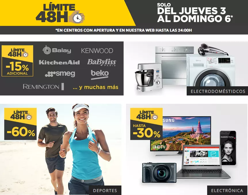 Y, por supuesto, no se trata de la película de Nick Nolte y Eddie Murphy sino de 48 horas de descuentos adicionales en productos ya rebajados. Descuentos que van desde un 15% adicional en electrodomésticos hasta un 60% en deportes.