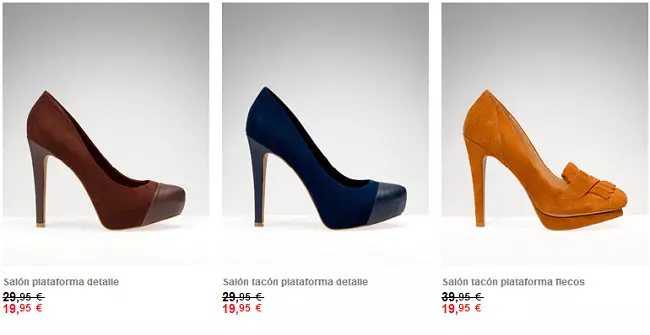 Solo en compras online y para llevarnos a casa botas, zapatos de tacón o planos y sandalias con descuentos de hasta 10 o 20 euros en cada par. En total, 47 modelos diferentes con rebaja, que igual habíamos visto ya y no nos llevamos a casa porque nos parecía excesivo el precio.