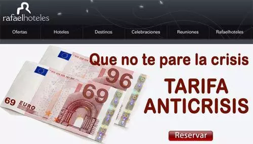 Encontrar una habitación en un hotel de Madrid o Barcelona por 69 euros no es sencillo. Sin embargo, ahora la cadena Rafael Hoteles ha decidido lanzar la "tarifa anticrisis", en la que ofrece alojamiento por ese precio en alguno de sus establecimientos de ambas ciudades, así como en Álcala de Henares o Badalona.