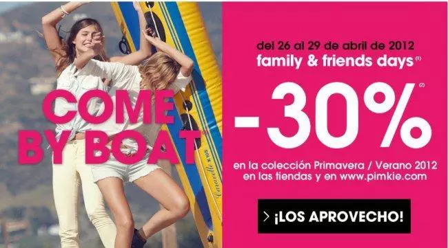 La promoción está activa tanto en la web para compras a través de internet y con gastos de envío gratis en compras superiores a 60 euros como en las tiendas físicas que podemos encontrarnos y visitar en todo el territorio español. Se trata de los Family & Friends Days y la oportunidad comprar ropa y complementos de la colección de Primavera y Verano 2012 por un 30% menos.