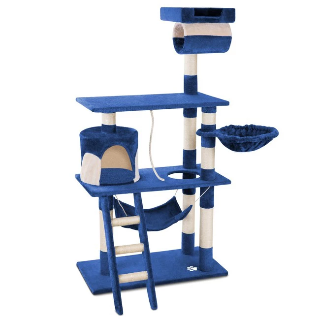 Con un rascador como este, consigues además, estimularlos para que se muevan del sofá y hagan algo de ejercicio, tan necesario, especialmente si tu gatito está castrado y ha cogido algo de peso. Lo tienes en varios colores a elegir, para poder integrarlo mejor a la decoración de la casa y la altura total de la estructura en forma de árbol es de 140 cm.