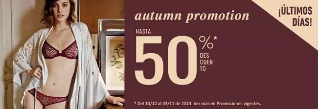 Si has entrado a alguna de sus tiendas, habrás visto que la promoción ‘autumn promotion‘ anuncia hasta un 50 % de descuento en artículos de otoño. Se trata de una selección de prendas, también disponible para tus compras en la tienda online.