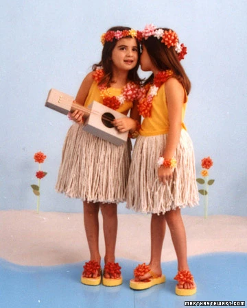 Una falda realizada por tí, una camiseta de verano, unas flores cosidas en diademas y unas chanclas, un collar y puedes presumir de tener la niña más guapa en estas fiestas. Es bonito, pero solo apto para usar en sitios cerrados o en zonas cálidas.