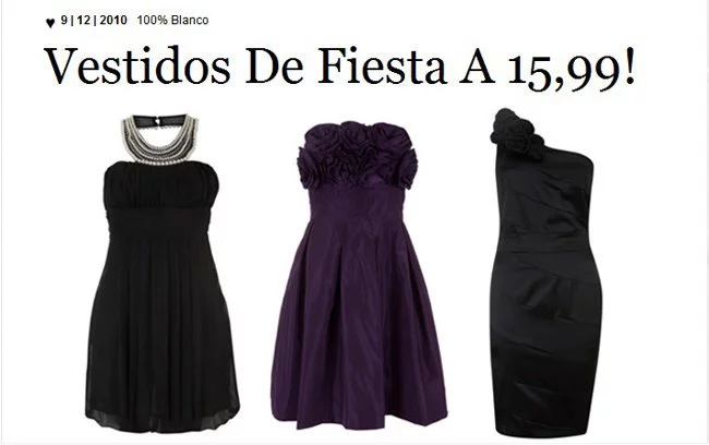 Si todavía no lo tienes claro, aprovecha esta oportunidad porque está muy bien. Blanco te pone una serie de vestidos de fiesta (que no todos, solo unos cuantos modelos) al módico precio de 15,99 que, ya me diréis vosotros, pero ¡está genial! Algunos de ellos tenían precio incial de 30 euros o de 25.