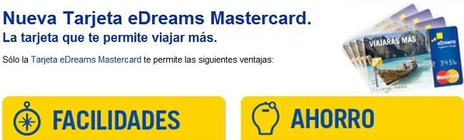 Una de las formas de hacerlo es contratar una tarjeta de crédito adecuada, que nos permita acceder a bonificaciones por compras entre otras ventajas. Esta es una de las ventajas que presenta la tarjeta de crédito que nos ofrece el portal de viajes eDreams, denominada eDreams MasterCard, que nos devuelve el 3% del importe de nuestros viajes hasta un máximo mensual de 150 euros.