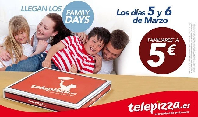 Ya sabéis que en Ahorro diario nos gusta hacernos eco de todas las ofertas y promociones que van surgiendo, aunque se trate de darnos algún que otro merecido capricho de vez en cuando. Si hoy o mañana estás pensando en salir a cenar o juntar a gente en casa para ver el partido o una peli, Telepizza vuelve a anunciar sus ‘Family Days’.