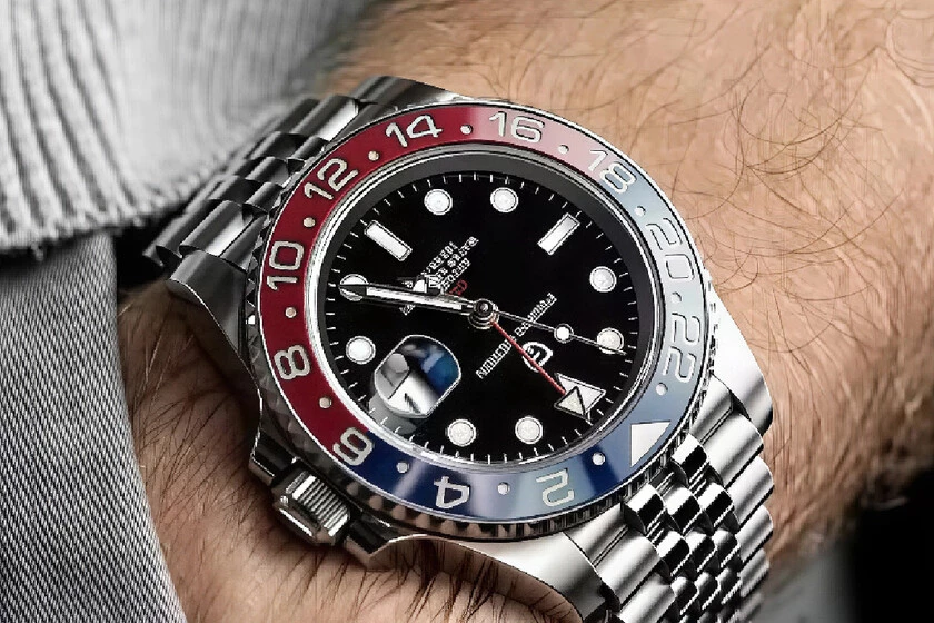 Este reloj automático de Pagani tiene un diseño elegante y cuenta con un sistema automático GMT que no depende de las clásicas pilas de botón. También tiene un cristal de zafiro muy resistente, ideal para prevenir roturas accidentales y arañazos. Además, se puede sumergir hasta los 100 metros de profundidad, siendo perfecto para practicar deportes acuáticos.
