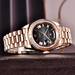 Lo primero que destaca de este modelo es que parece una pieza de joyería, por lo que es muy indicado para las ocasiones que requieren un tono más formal. Es un reloj automático de 36 mm con un cristal de zafiro antirreflectante. Sin embargo, su baño de oro rosa es su principal atractivo, ya que además de lucir más elegante también lo hace más resistente a los roces y rayones accidentales.
