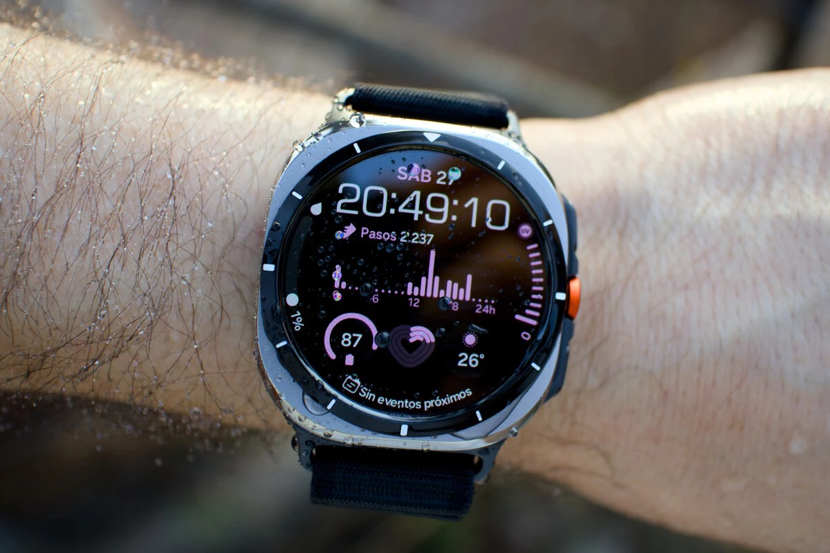 Lo primero que destaca del Samsung Galaxy Watch Ultra es su pantalla Super AMOLED de 1,5 pulgadas, con un brillo de 3.000 nits con el que podremos apreciar todos sus detalles incluso a plena luz del sol. Por otro lado, su resistencia es bastante alta, con certificación IP68 y militar, lo que le permite sumergirse hasta los 100 metros y resistir arañazos o golpes accidentales. Su GPS es de doble frecuencia, para una geolocalización precisa incluso en entornos urbanos más densos.