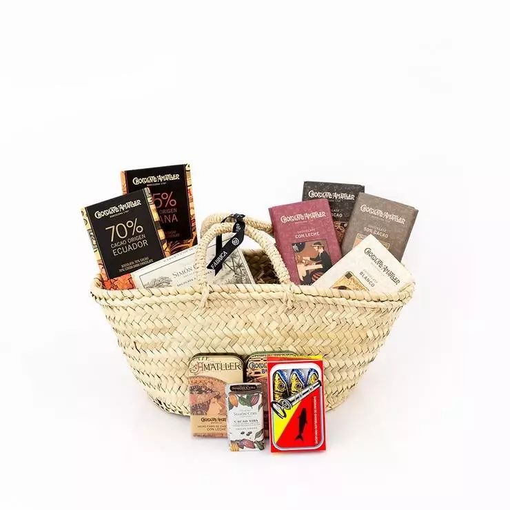 - Si tu gourmet es un amante del chocolate, va a llorar de alegría con este capazo cargado de productos con el cacao como protagonista. Una presentación de lo más original para regalar por 42,40 euros.