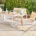 Toda la estructura del set está fabricada en acero con revestimiento de polvo de color blanco, un material resistente a la corrosión y duradero que lo convierten en una de las opciones ideales para mobiliario exterior. Además, los asientos están confeccionados en textilene, que es muy fácil de limpiar con un paño húmedo y es de secado rápido.