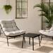 Este set está compuesto por dos sillones de 87 x 66,5 x 81 centímetros, una mesa de dentro de 42 x 43 x 41,5 centímetros y dos cojines de 113 x 63 x 14 centímetros de ancho, largo y alto. Unas medidas ideales para una terraza o balcón en el que se pueden acomodar hasta dos personas.