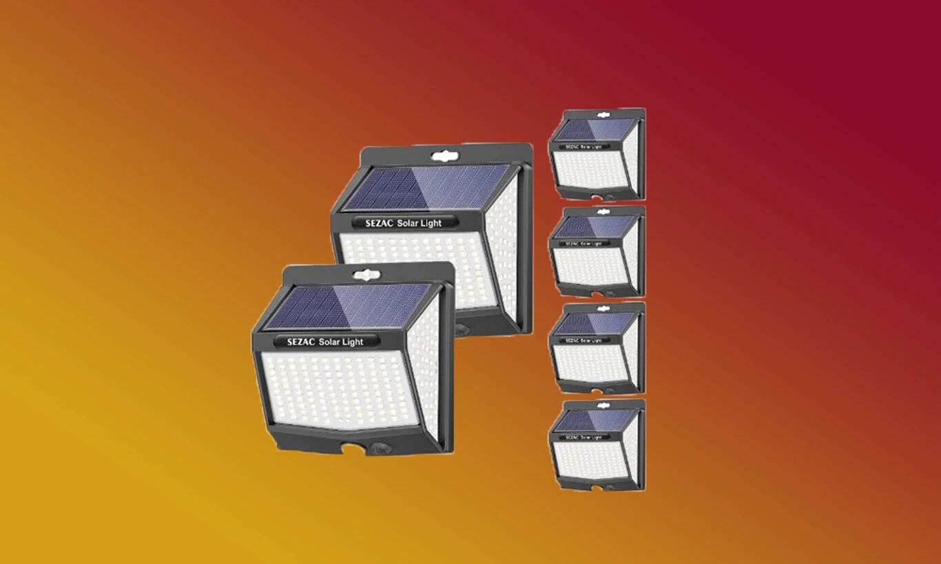 Luz Solar Exterior [6 Paquete/3 Modes] SEZAC 270° Súper Brillante Focos Led Solares con Sensor de Movimiento, IP65 Luces Solares para Jardin, Garajes, Caminos, Puertas Delanteras