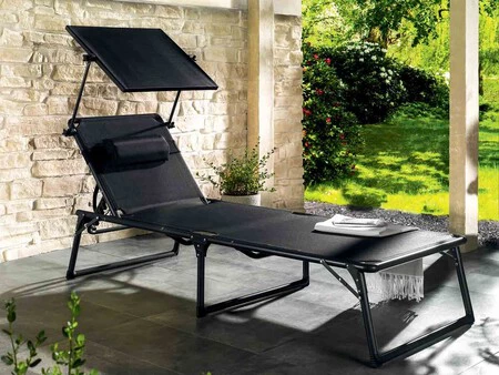 Tumbona de aluminio con parasol regulable negra