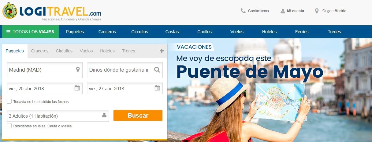 Se acerca el puente de mayo y Logitravel nos ofrece, aparte de sus chollos habituales, una selección de packs de viaje y hotel a muy buen precio:
